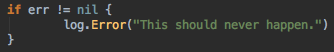 This also ties in perfectly with Go’s pattern of passing errors up the call stack until something can handle it.