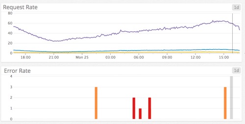 Because we’re writing webapps, the definition of “something’s gone wrong” is “we’re returning an HTTP error code”. For everything else (e.g retrying failed calls to external APIs), put metrics around it.